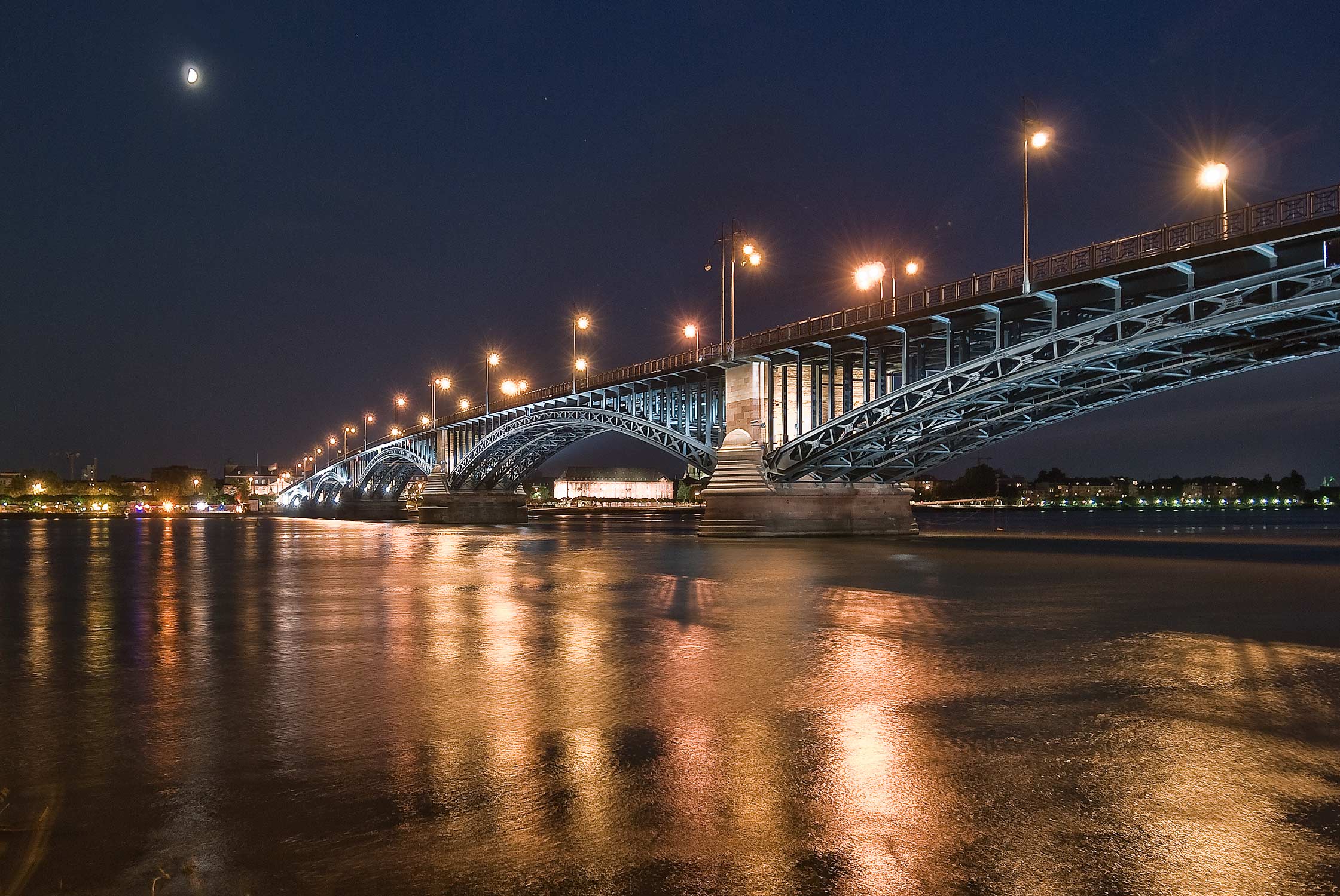 Diese historische Brücke über den Rhein verbindet seit 1885 die Stadt Mainz mit der Stadt Wiesbaden. Fotografiert am 10.06.2008